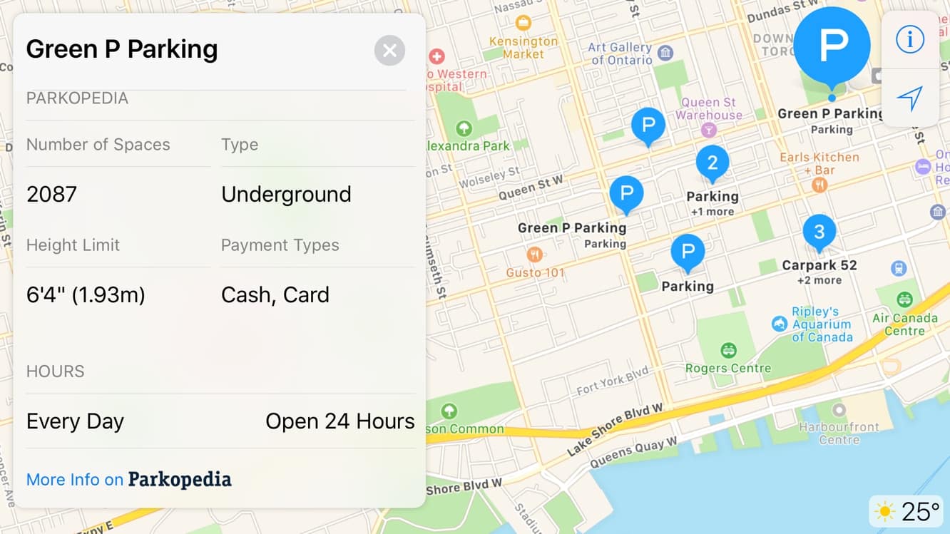 A spokesperson indicated that Apple has been slowly integrating the functionality into Apple Maps since March, but today’s announcement represents a worldwide rollout with full functionality taking place now. Searching for parking in Apple Maps should begin showing Parkopedia content across parking lot icons which will appear on Apple Maps and include data such as location, payment type, number of spaces, and more.