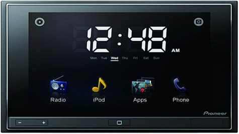 Other features include a WVGA (800 x 480), 6.1-inch capacitive touchscreen, three physical buttons—volume up, volume down, and home—built-in Bluetooth for hands-free calling, an AM/FM radio with RDS text information display, an input for an optional vehicle mounted rear facing back-up camera, a 30-pin connector, an external GPS antenna, an external microphone for hands-free calling, a wired remote steering wheel control adapter, and an external amplifier via one set of preamp outputs. Pioneer’s AppRadio automotive receiver will be available in late June and is expected to sell for less than $500.