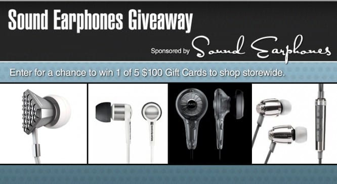 iLounge and SoundEarphones are giving away five (5) $100 Gift Cards for use at SoundEarphones.com. You can purchase any of their products using the gift card.