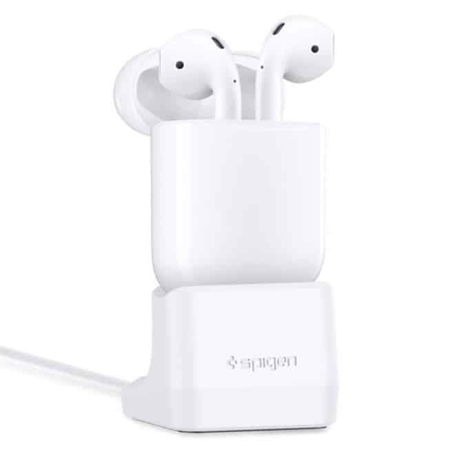 Spigen has created the first AirPods-specific charging stand, designed to hold the AirPods charging case upright while plugged in to charge. At $12, the stand could provide users looking to plug in the case without futzing with a cord each time a cheaper option than another Lightning dock.