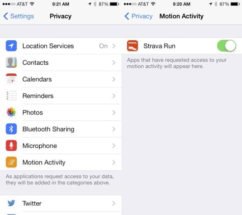 As the M7 is allowing for more motion data reporting than ever before on an iPhone, each app must request motion-tracking permission, notably separately from access to GPS functionality.