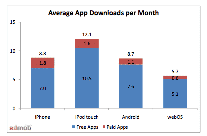 Finally, 91% of iPhone users and 88% of iPod touch users would recommend their device, compared to 84% of Android users and 69% of webOS users. AdMob’s January survey included 963 respondents across all of the platforms.