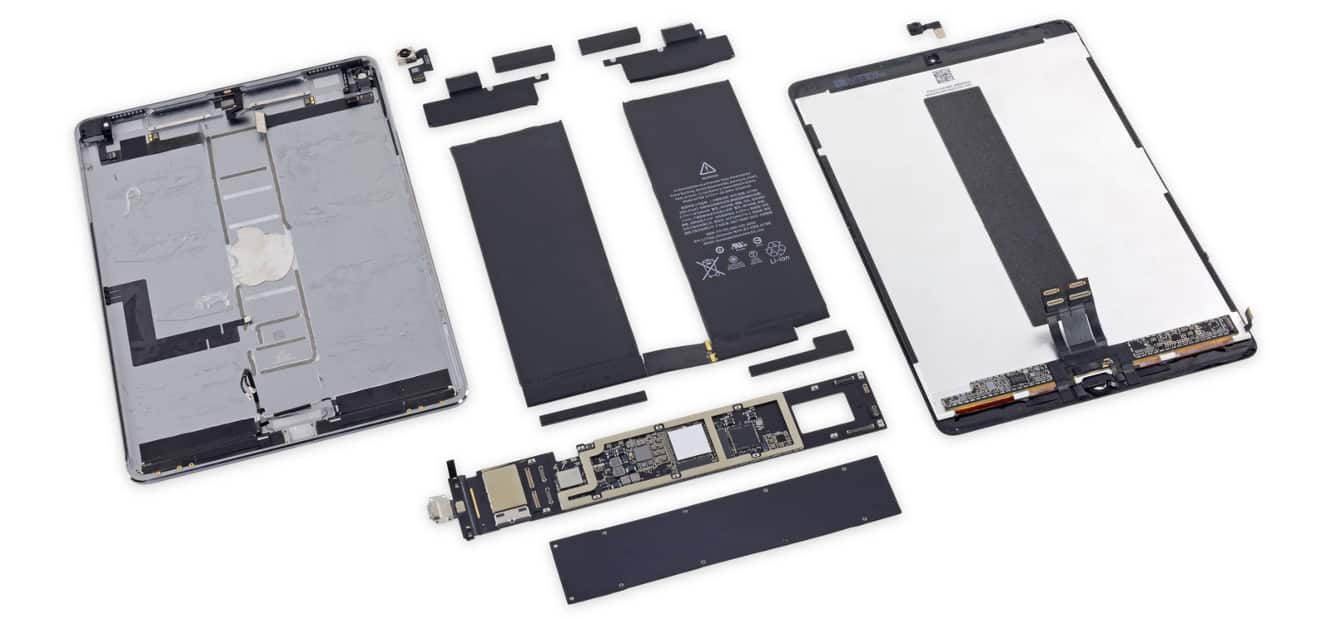 After giving the new 10.5” iPad Pro a complete teardown, iFixit found the device much more logically arranged and repairable than previous models. Display cables are arranged in the center of the iPad—away from the edges where prying tools could snip them while opening the device — and Phillips screws now hold down the display cable bracket instead of the special tri-point screws found in the iPhone 7 and iPhone 7 Plus.