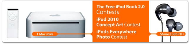 - The iLounge Free iPod Book 2.0 Contests will begin as of this posting.