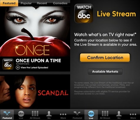 ABC has relaunched its ABC Player app as Watch ABC, which now streams live programming in limited markets. Currently, live streaming of ABC programming is only available in the New York City and Philadelphia areas.