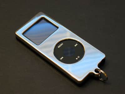 Pros: An attractive metal case for the iPod nano – the first of its type – with a smart magnetic design that permits easy opening and closing without latches, snaps, or screws. Includes small keychain ring, appropriately sized headphone port hole, and protection for almost all of the iPod nano’s body.