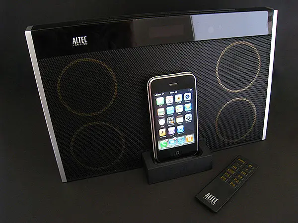 Several historical details might help you to understand where inMotion MAX fits into the iPod/iPhone speaker galaxy. Altec created the first dedicated portable iPod speaker, inMotion, and then released numerous sequels of various shapes and sizes. But a few years ago, Logitech started to release competing speakers that outperformed comparably-priced inMotion offerings, beginning with the mm50. This portable unit had a marked audio performance lead over Altec’s same-priced designs, but Altec introduced a nice alternative in the $150 glossy black iM600—the family’s best-sounding system to date, and the first with an integrated FM radio. Logitech responded with the Pure-Fi Anywhere, and more recently the identical but iPhone-ready Pure-Fi Anywhere 2, lowering its price to $130.
