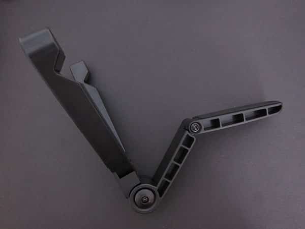 Amzer’s Foldo has no such issue with pricing, and there’s little question that it’s a very practical design, too: as the name suggests, Foldo is a collapsible stand that unfolds to provide complete support for an iPad on virtually any flat surface, offering a gentle recline that can be made dramatically steeper via adjustments to its double-hinged support arm. Foldo provides enough support to enable the iPad to be used as a video device on almost any angle, but doesn’t hold the iPad ideally for keyboard typing when the recline is significant.