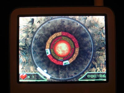 Apple Computer clearly has a thing for Atari’s 1976 arcade game Breakout. Perhaps it’s the fact that Apple’s co-founders Steve Jobs and Steve Wozniak worked on the original title, which was remade for the iPod as Brick, or maybe it’s the fact that the game is so simple that any device with a rotary controller can play it. Whatever the reason, Apple’s latest iPod game Vortex ($5) is yet another Breakout clone, this time with two initial twists: now you’re firing the brick-busting ball down a tube-shaped well, and both your paddle (“bat”) and the bricks are rotating around the walls of the well.