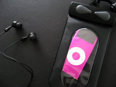 Despite the 100% Waterproof branding, Aquapac’s earphones apparently aren’t meant to be drowned—placed underwater without your ears to protect their drivers. Do that and the resulting audio will be muffled and muted, though not inaudible: turning the iPod’s volume up significantly will let you hear your music, less clearly than before. At that point, you should hope that both earphones are equally wet, or else you’ll have one earphone blaring while the other isn’t, a bad idea for safe listening. Alternately, you can get the music to come back to near-perfect sound with a quick dab against a dry towel on shore.