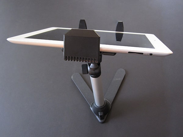 Akron has released a pair of universal tablet stands, both of which are advertised with and clearly support all iPads. 10″ Universal Mini Tablet Stand with Quick Release Holder ($40) is made for desktop use.