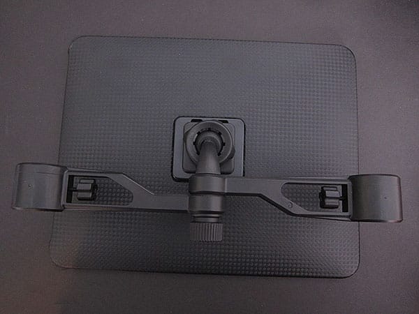 While some of Arkon’s individual components look as if we’ve seen them from other companies before, we’ll admit to being intrigued by the overall direction its iPad and iPhone vehicle mounting lineup is taking. On the iPad side, the company has the Headrest Mount with Custom Fit Holder ($40, IPM-RSHM), which impressively solves the “how do I hang the iPad in the back seat of my car?” question with a custom hard plastic headrest mount that requires only the popping out of the headrest, adjustment of two thumbscrews for stability, and attachment of the mount to matching bracket holes on an included iPad case. A ball joint in the mount lets you adjust the iPad’s angle for easier viewing on your preferred angle.