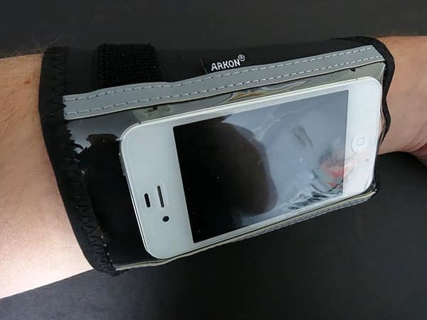 Apart from the location of the iPhone—you’ll have to decide whether you really want to keep a device just mounted above your wrist and considerably below your bicep during workouts—we found it easy to use the screen through the thin window.