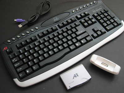 This black USB 2.0 keyboard features a large port on top for one of two attachments, an iPod dock or a flash card reader, and the iPod dock is listed as a “bonus” feature.