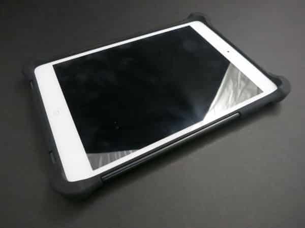 It’s easy to encase the iPad mini in the soft, silicone layer first, and then double up the protection with the plastic shell; the two layers fit together well. It looks similar to any number of cases that combine materials, although the extended corners make it a bit more distinctive and add some extra protection. With the shield in place, Tough Jacket can be propped up for viewing or typing.