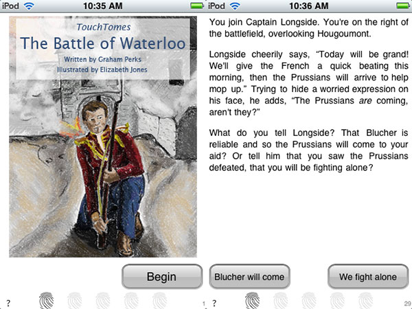 Our final title today is TouchTomes’ Battle of Waterloo ($4), which takes a completely different angle from the rest of the war games here. There’s no action.