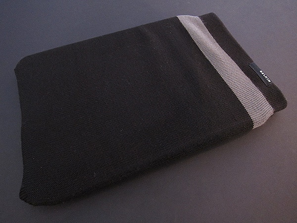 It’s an iPad Sock! No, it’s not a carbon copy of Apple’s much-maligned but still available iPod Socks, but rather a larger, similar Belkin release called the Cap Sleeve for iPad ($40). Rather than selling a bunch of iPod Socks in different colors within the same package, Belkin’s knit Cap Sleeve is sold one to a box in either black or purple with a second accent color, and obviously is large enough to hold the iPad bulging inside.
