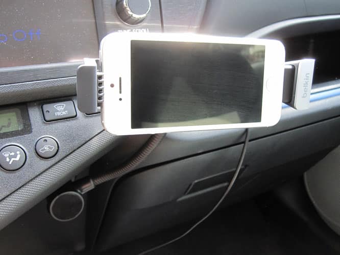 There aren’t too many surprises from the last two of these pieces. The charger provides the proper amount of power to an iPhone to juice it up, even when a maps application is running. Rubber pads and a flange around the tip help secure it in place. The neck juts out of it at an angle that’s nearly perpendicular, and can be easily adjusted while holding its shape. In our testing, it’s not so tense as to prevent some bouncing while driving, but it works well otherwise.