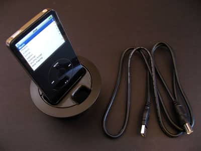 Shown initially as a concept “grommet dock” accessory, but now a part of a larger lineup of in-desk docks, Belkin’s In-Desk Dock for iPod is a unique accessory that lets you dock your iPod inside of the grommet holes found in some desks.