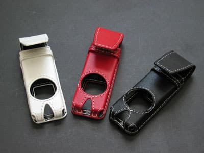 Pros: A set of three differently colored leather iPod shuffle cases in a single package with small improvements upon earlier designs sold by Pods Plus. Compatible with either of shuffle’s USB caps.