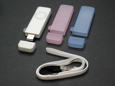 Pros: Silicone rubber protection in three colors for iPod shuffle, including detachable lanyard necklace.
