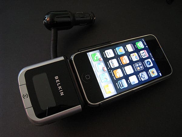The history of Belkin’s TuneBase FM line dates back to late 2004, when the iPod mini-only TuneBase FM was released. Subsequently, there have been a number of other editions of the product, including versions for full-sized iPods and iPod nanos, as well as last year’s revised iPod-agnostic version with a new automatic station-finding feature called ClearScan. Each product has offered the same general features — a car charging bulb with a protruding gooseneck mount, an iPod-holding cradle, and an integrated user-tunable FM transmitter — but the cosmetics and specifics have changed a little from year to year.