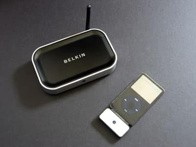 The transmitter also uses Belkin’s special enhanced Dock Connector plug so that it can be connected to iPods that are still inside many cases, and the receiver retains its abiity to be mounted on a wall. A power adapter and minijack-to-RCA audio cable are also included in the box.
