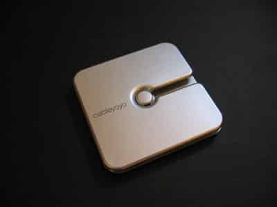 Though it’s designed to look almost like an old floppy disk, the cableyoyo is in essence a flat spool, around which you wind cables the thickness of Apple’s USB and FireWire cables for the iPod.