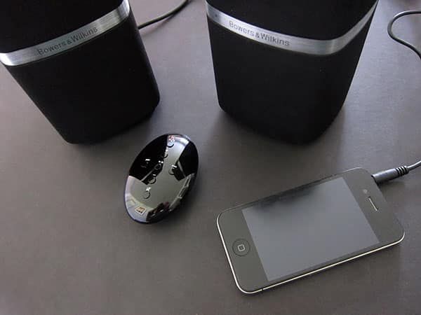 A single cable connects both speakers, while another wire connects to the external power supply, and another connects to an audio source; two optional ports handle a direct USB connection to a computer (for software upgrades and streaming) and headphone output from the speakers. Pricey considering that they provide only a four-driver solution with no dedicated subwoofer hardware, MM-1 is nonetheless very stylish in keeping with B&W’s other products, does a fair job of cable management through the rubber bottoms of its speakers, and provides nice sound, which we’ll discuss in an update to this preview in the near future.