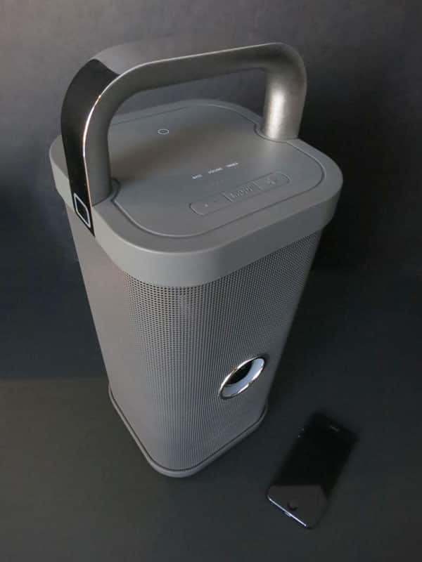 It’s an undeniably handsome design, with the materials, weight, and elegance coming together to make a great first impression for Big Blue Party: no one’s going to confuse this with a common $100-$150 portable speaker. Putting sound quality completely aside, this just looks and feels like something worthy of a premium price, which is an important psychological hurdle for any $300 speaker system to overcome.