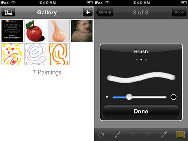Brushes – iPhone Edition ($5) is a fairly well-rounded drawing application, featuring a built-in gallery and offering users control over the size, texture, and color of the lines being drawn.