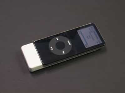 It’s far more common that we come across iPod accessories that look good but work poorly than ones that work well but look odd. BTI’s FM Transmitter for iPod nano ($40) is an example of the latter concept in action, a sled-like transmitter attachment for the super-thin iPod that mounts its controls on the nano’s back, rather than on its front or sides. We opted not to give it a lengthy review because it’s not a standout on audio performance – it lacks for dynamic range (high treble, low bass) relative to nano transmitters we’ve recently tested from Griffin, Belkin, and Kensington – but we wanted to cover it anyway, as it delivers acceptably clean audio output, and is hurt mostly by the weirdness of its interface.