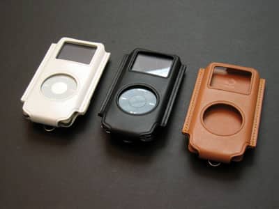 These three leather iPod nano cases – called Chic Leather Cases ($20) by Capdase – are sold individually in black, brown, and white colors. They’re so simple and are exceedingly threadbare that we didn’t think them worthy of a full review: all you get is a leather iPod sleeve with a metal snap and D-ring on its back, the latter intended for attachment to a lanyard you can buy optionally.