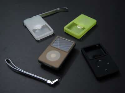 The “Soft Jacket for fifth generation iPod” is a thin, simple, silicone skin-style case available in custom sizes for both 30GB and 60GB iPod models. In each size, a total of 6 colors are available. Five of these options (white, grey, green, orange, and blue) are “frosted,” or semi-translucent, and the final color is a completely opaque black.