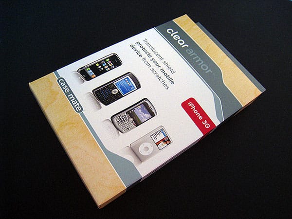 Updated for the iPhone 3G from the prior iPhone version, Clear Armor ($20) is a clear film protective solution for the new device, packaging two sets of front and rear film with a cleaning cloth, plastic squeegee, and water-based application solution.