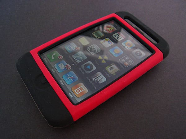 Our review sample arrived with only one accent, the red one, which bulged and flopped around on our iPhone 3G.