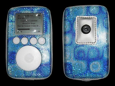 Intended only for thinner 3G iPods, the Clarence case uses a fabric back with a transparent vinyl front and side shell. Again, we were sent the most visually aggressive version, but Case Closed’s offerings include blue and pink color alternatives, and unlike the Sheldons, Clarence cases allow the iPod to largely obscure the case’s back rather than put the fabric on display. The vinyl shell protects iPods only adequately, leaving quite a bit of the face (save the screen) exposed to the elements, but does provide a highly transparent avenue to show off your iPod. We were able to squeeze a 30GB iPod in when we tried, though it was definitely a small struggle to get it out afterwards.