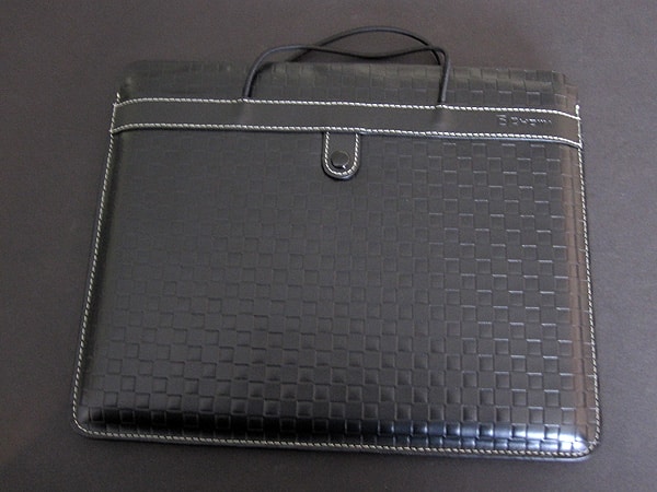 Elastic bands on either side look like handles, but they’re actually made to secure the iPad or iPad 2 in place by stretching across the open edge and securing under snaps. 6E Sleeve ($30) takes a somewhat different approach.
