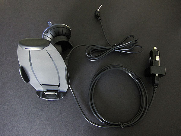 Rather than requiring potentially professional-grade wiring and installation, the Car Dock is a plastic iPhone cradle designed to mount on your dashboard or windshield using an included suction cup mount or adhesive pads, plus a folding, rotating plastic arm. A USB-based charging bulb and a separate audio cable are included, intended to be connected to the side of the Car Dock and then the vehicle’s cigarette lighter power adapter and line-in port, respectively.