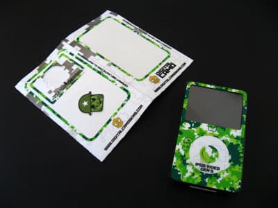 Varying from iPod model to model, Digital Camo’s new Skins ($10 per set) are 3M film-based stickers that cover parts of the back and sometimes the front of an iPod or iPhone.