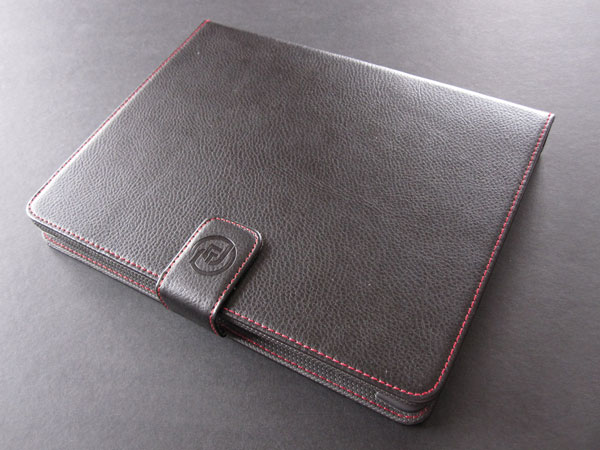 The faux leather folio is quite thick, although we’ve seen similar cases without batteries that are about the same size. A magnetic tab along the open edge keeps it shut when you’re not using the tablet. Inside, an X-shaped rubber frame is used to hold the iPad in place.