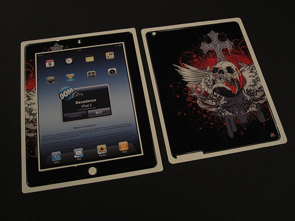 What makes DomeSkins unique among the sticker options is the texture. Rather than using traditional thin, flat stickers, these are raised; puffy, even. Coated in a relatively thick plastic, they are by far the heaviest and bulkiest. That is not necessarily a bad thing, but it will prevent some users from being able to use an iPad Smart Cover. Only two dozen different designs are available, a library much smaller than that offered by either GelaSkins or MusicSkins, and there are no works from any big name designers. As with GelaSkins each design has a corresponding wallpaper, but rather than an open download, it’s sent via email after the purchase is complete.