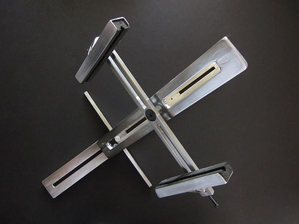 Apologies in advance, Eccentric Goods, for what has to be said in honestly evaluating your new iPadValet ($100) stand for the iPad: for many reasons, this really isn’t a good idea. Positively gargantuan and inefficiently designed by comparison with virtually every iPad stand we’ve previously looked at, iPadValet uses 1/4″ thick aluminum to form what comes out of its large plastic carrying box as a set of long metal brackets, unfolding first into a crucifix and then — after unscrewing three separate pieces and attaching them to different positions, a really big iPad stand.