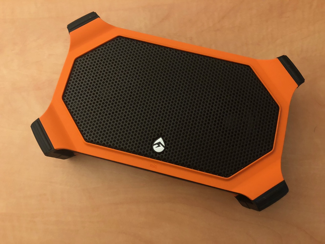 EcoSlate is available in three fun colors — orange (pictured), mint green, and electric blue — in addition to the more typical black and gray designs, adding a more appealing splash of style to the typically boring black matte rubber that we’ve started to find tiresome. In addition to the speaker itself, the package includes a micro USB to USB charging cable, a 1A USB charging adapter. and a carabiner and lanyard for hanging the speaker. We particularly applaud Ecoxgear for including the power adapter; it’s a small thing, but nice to see in an era when many speaker manufacturers have been omitting power adapters — and in some cases even micro USB cables — in order to cut costs and packaging.