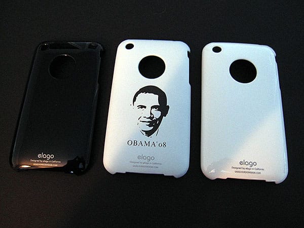 Two of the Elago shells we saw were made from glossy white or black plastics that looked nearly identical to what the iPhone 3G ships with. The third was matte white and plastered with some truly awful Barack Obama artwork, which one of our editors felt resembled Benicio Del Toro more than the U.S. President-Elect. There are other versions, as well, and the Gogo case has its own spins; a gradient metallic copper take is at least mildly interesting, while one with a cartoony character on the back is just sort of odd.