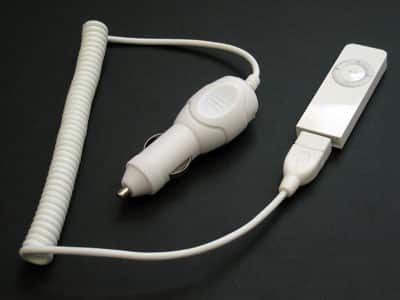 If you need an simple way to recharge your iPod shuffle in the car, ezGear’s ezCharge for iPod shuffle ($19.98) will meet your needs. It’s a generic-looking white plastic car charger with a coiled cord in the center and a female USB port at the end, matched only vaguely to the iPod shuffle’s look and feel.