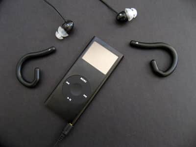 Pros: Pretty good sounding water-resistant earphones that can be used above or below water – under some conditions – and include a coiled, in-line cord managed, gold plug-tipped cable. Design is aesthetically far more in keeping with iPod’s sleek looks than other waterproof earphones we’ve tested.