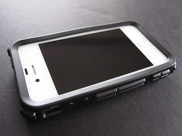 There are openings for the rear camera and flash, headphone port and noise-canceling mic, side switch, speaker, Dock Connector port, and microphone, but the Sleep/Wake and volume buttons are covered with rubber. We weren’t impressed with the fact that when you press any of those buttons the entire edge of the case lurches inward, but again, it does retake its place when released. The foam juts out from the back, sides, and corners. Without testing it to the same crazy degrees as G-Form does—hitting the iPhone with an ice hockey stick like a puck, for example—it’s clear that the Poron material is going to absorb more of a shock than simple plastic or rubber.