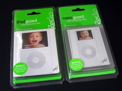 As part of Gecko Gear’s complete line of iPod case and protective accessories, nanoguard and iPodguard films provide front and back coverage for your 5G iPod or iPod nano; the Click Wheel cover separates from the rest of the front face, as does the Action button cover.