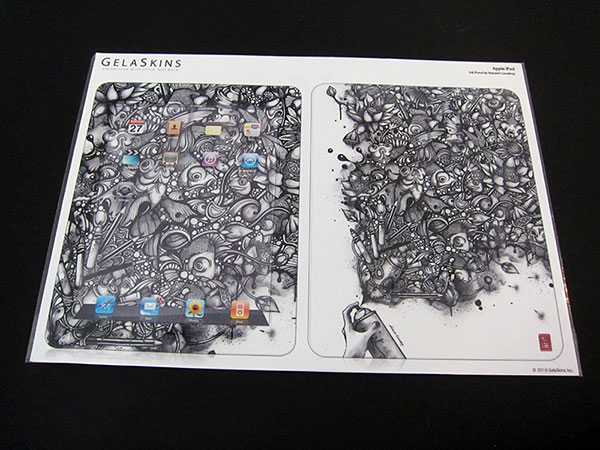 Available in both stock and do-it-yourself formats, the GelaSkins feature full-bleed artwork that covers the black area around the iPad’s screen, as well as its back, with a hole in the front for the iPad’s Home button.